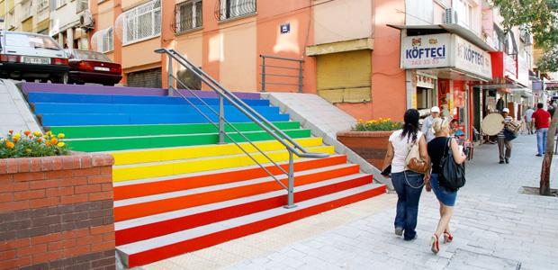 İstanbul Fındıklıda gökkuşağı renklerine boyanan merdivenlerin yarattığı akım ülke geneline yayıldı. Uygulamaya Konak Belediyesi de katılırken İnönü Caddesi 343 Sokakın merdivenleri Fen İşleri Müdürlüğü ekipleri tarafından gökkuşağı renklerine boyandı.