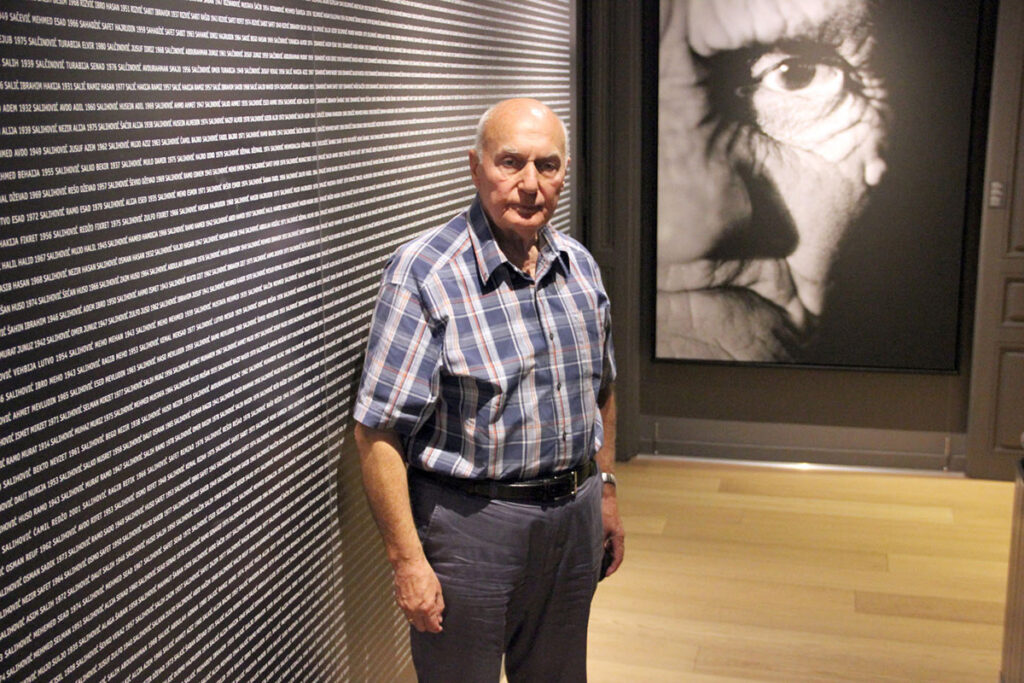 Türkçe bir metin görmek şaşırtıyor hepimizi. Daha sonra Tarik Samarah’la konuştuğumuzda bunun Türk halkının savaşta ve sonrasında barış zamanı Boşnak halkına verdiği desteğe karşılık küçük bir jest olduğunu öğreniyoruz. Serginin yapıldığı katta asansörden indiğimizde üzerinde savaşta yaşamını kaybeden binlerce ismin yazılı olduğu siyah beyaz bir pano ve yüzünde acı bir ifade bulunan yaşlı bir kadın fotoğrafıyla karşılanıyoruz.