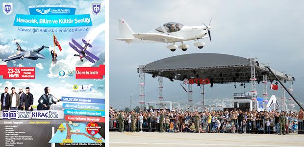 Saat 10.00’da Gaziemir Belediyesi Halk Oyunları gösterisi ve paintball etkinliğinin ardından 12.20’de başlayacak SOLOTÜRK prova uçuşlarını Mosquito uçuşu, sıcak hava balon uçuşu, performans oyunları ve motorlu yamaç paraşütü uçuşu izleyecek. Saat 16.00 -17.00 arasında Hava Eğitim Komutanlığı Bandosu konseri, 20.30 -22.00 arasında da Grup Kolpa konseri dinlenebilecek.