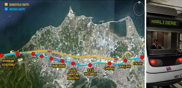 Üçyol-Üçkuyular metro hattının uzantısı niteliğindeki Fahrettin Altay – Narlıdere hattı toplam 8.5 kilometre uzunluğunda olacak. On istasyonlu olarak planlanan güzergahın projesi hazır olan ilk 4.5 kilometrelik bölümünde Balçova, Çağdaş, Dokuz Eylül Üniversitesi Tıp Fakültesi Hastanesi, Güzel Sanatlar Fakültesi ve Narlıdere olarak belirlenen beş yer altı istasyonu bulunuyor. İkinci aşama olarak Narlıdere İstihkâm Alayı’na kadar olan bölümde yine beş yer altı istasyonu yapılacak. Güzergahın tamamının aç-kapa tünel şeklinde yapılması planlanıyor.