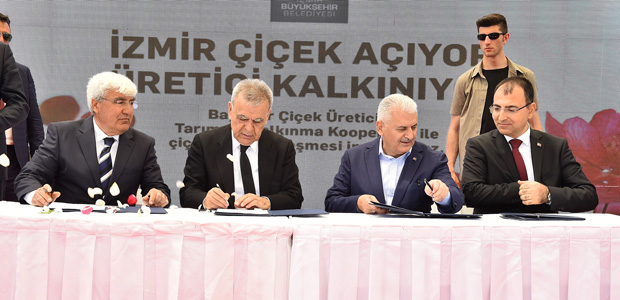 Bayındır Çiçek Üreticileri Tarımsal Kalkınma Kooperatifi Ersoy Sümerkan, 2000 yılında 17 kişiyle kurulan kooperatifin yıllar içinde emin adımlarla büyüyerek 430 ortağa ulaştığını belirterek, destekleri nedeniyle İzmir Büyükşehir Belediye Başkanı Aziz Kocaoğlu’na teşekkür etti. Törende Ulaştırma, Denizcilik ve Haberleşme Bakanı Binali Yıldırım, İzmir Valisi Mustafa Toprak, İzmir Büyükşehir Belediye Başkanı Aziz Kocaoğlu ve Bayındır Çiçek Üreticileri Tarımsal Kalkınma Kooperatifi Ersoy Sümerkan, Büyükşehir Belediyesi’nin 2016 yılı çiçek alımlarını kapsayan sözleşmeyi birlikte imzaladı.