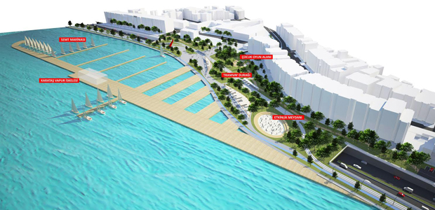 Bölgede kıyı ile bütünleşecek 42 bin metrekarelik açık alanı kapsayan proje, 6 kilometrelik Mustafa Kemal Sahil Bulvarı’nın 1,2 kilometrelik kıyı şeridini kapsıyor. İkinci aşamasında vapur yanaşma yeri ve tekne bağlama iskelelerinin de yapılacağı 42 bin metrekarelik bu alana Aziz Kocaoğlu’nun isteğiyle “15 Temmuz Demokrasi Meydanı” adı verilmeye hazırlanıyor.