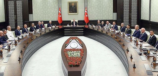 Milli Güvenlik Kurulu, Cumhurbaşkanı Recep Tayyip Erdoğan’ın başkanlığında, Cumhurbaşkanlığı Sarayında toplandı. Başbakan Binali Yıldırım, Dışişleri Bakanı Mevlüt Çavuşoğlu, İçişleri Bakanı Süleyman Soylu, Milli Savunma Bakanı Fikri Işık, Adalet Bakanı Bekir Bozdağ, Genelkurmay Başkanı Orgeneral Hulusi Akar, Kara Kuvvetleri Komutanı Orgeneral Salih Zeki Çolak, Deniz Kuvvetleri Komutanı Oramiral Bülent Bostanoğlu, Hava Kuvvetleri Komutanı Orgeneral Abidin Ünal ve Jandarma Genel Komutanı Orgeneral Yaşar Güler katıldı.