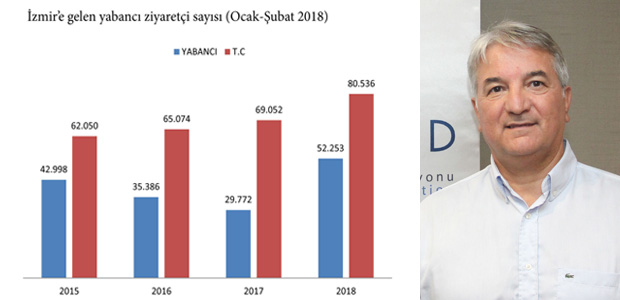 Son yıllarda duran kruvaziyer turizmi 2018’in iki aylık döneminde de canlanamadı. Alsancak Limanı’na kruvaziyer hariç toplamda 3 bin 801 kişi geldi. Adnan Menderes Havalimanı yabancı girişleri yüzde 52 artarak 42 bin 415’e çıktı. Yurt dışından gelen vatandaş ziyaretçi sayısı da yüzde 16,9 artarak 70 bin 164 kişiye yükseldi.