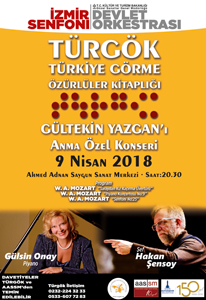 İzmir Devlet Senfoni Orkestrası ile yaptıkları işbirliği sonucu TÜRGÖK yararına bir konser düzenlemeyi kararlaştırdıklarını anlatan Yazgan, “Proje kapsamında bizimle birlikte olan İzmir Devlet Senfoni Orkestrası’na şimdiden teşekkür ediyorum. Tüm İzmir halkını konserimize bekliyoruz. 9 Nisan Pazartesi günü 20.30’da başlayacak konserin davetiyeleri TÜRGÖK’ten temin edilebilir” diye konuştu.