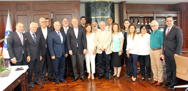 Ege Turistik İşletmeler ve Konaklamalar Birliği (ETİK) Yönetim ve Danışma Kurulu üyeleri, İzmir Ticaret Odası (İzTO) Başkanı Mahmut Özgener’e “hayırlı olsun” ziyaretinde bulundu. İşler’in başkanlığındaki heyette, ETİK yönetim ve denetim kurulu üyeleri Şinasi Akçay, Uğur Şahbaz, Timur Ömürgönülşen, Haluk Alay, Bahadır Erdin, Bilge Durdu, Funda Çam ve Didem Dirik, Abdülaziz Ediz ile Dr. Zeki Hozer de yer aldı. ETİK heyetinin ziyaretinde İzTO Yönetim Kurulu Başkan Yardımcısı Cemal Elmasoğlu, İZTO Yönetim Kurulu Üyesi Oğuz Özkardeş de bulundu.