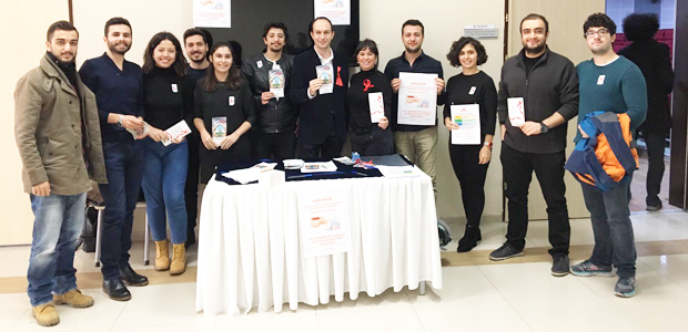 İl Sağlık Müdürlüğü yetkilileri, Aile Sağlığı Merkezi hekimlerinin de katıldığı panel öncesinde kurulan bilgilendirme standında intern doktorlar ve asistanlar gençlere AIDS hakkında hazırlanan broşürleri dağıttı.