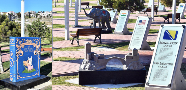 Çin Halk Cumhuriyeti’nin Wuhan ve İtalya’nın Torino kentinden armağan edilen çalışmaların yer aldığı koruya, Bulgaristan’ın Kırcaali kentinde tasarlanan “Orfeus Tapınağı” kalıntılarının replika çalışmasının da önümüzdeki günlerde yerleştirilmesi planlanıyor. Parkta ayrıca İzmirli bir heykeltıraşın elinden çıkan Almanya’nın Bremen kentini simgeleyen ”Bremen Mızıkacıları” heykeli, Bosna Hersek’in Mostar kentini simgeleyen ”Mostar Köprüsü” replikası, Hindistan’ın Mumbai kentini simgeleyen fil heykeli ve Danimarka’nın Odense kentiyle özdeşleşen Andersen’in “Andersen’den Masallar” kitabının heykelleri de bulunuyor.