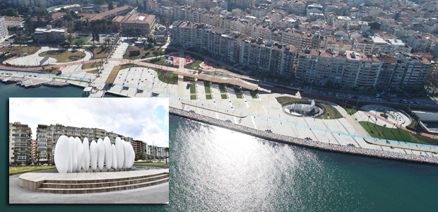 Yeşil dokusu, farklı peyzaj uygulamaları ve oyun gruplarıyla bölgeye estetik açıdan önemli bir değer katacak olan bu yeni meydan, İzmirlileri 1200 metrekarelik sahil şeridi ile buluşturuyor.