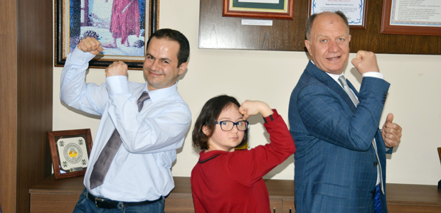 Milli sporcu İrem Öztekin’e hediye çantasını Nevvar Salih İşgören Vakfı Genel Sekreteri Mahir Dinç, Alsancak Nevvar Salih İşgören Mesleki ve Teknik Anadolu Lisesi Müdürü Ömer Edip Ocakoğlu ile birlikte 21 Mart Dünya Down Sendromu Günü’nün ertesinde verdi. “Türkiye Özel Sporcular Spor Federasyonu Down Sendrom Yüzme Milli Takımı Yüzücüsü, sadece kromozom sayısıyla değil değil, her zaman pozitif gülüşüyle hepimizden bir adım önde olan gururumuz İrem’in yanındayız” diyen Dinç, sözlerini şöyle sürdürdü:
