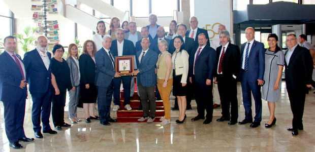 TÜROFED Başkan Yardımcısı ve ETİK Başkanı Mehmet İşler, İzmir Büyükşehir Belediye Başkanı Tunç Soyer’e Egeli turizmcilerin istek, görüş ve önerilerini aktardı. İşler, turizm sektörüne katkıları ve yaklaşımı nedeniyle Soyer’e teşekkür ederek ebru sanatı uygulanmış doğaltaşla oluşturulan bir plaket sundu.