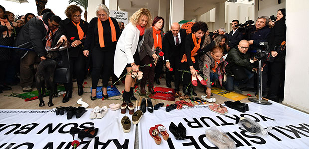 Kadına karşı şiddet konusunda farkındalık yaratmak için Konak’a gelen kadınlar, öldürülen kadınları temsilen ayakkabılar bıraktı. Konuşmaların ardından İzmir Büyükşehir Belediyesi Çetin Emeç Salonu’nda İzmir Büyükşehir Belediyesi ile İzmir Barosu arasında “Şiddet Mağduru Kadınlara Yönelik Güçlendirme ve Farkındalık Çalışmaları” başlıklı bir işbirliği protokolü imzalandı.
