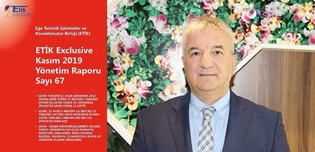 ETİK’in özel yönetim raporlarının 67. sayısında İzmir turizminin Kasım ayı haraketliliği ve analizine yer verildi, 2019 yılının 11 ayı değerlendirildi. Rapora göre, İzmir’e 2019 yılının 11. ayında gelen toplam ziyaretçi sayısı 2018 yılına göre yüzde 34 arttı. Yabancı ziyaretçi sayısı geçen yıla göre yüzde 35, vatandaş ziyaretçi sayısı yüzde 33 artış gösterdi.