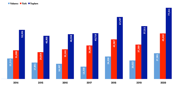 | Yabancı | 22.213 | 17.851 | 16.397 | 13.330 | 24.330 | 20.022 | 27.901 |