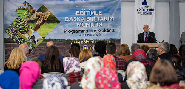 Projenin açılış töreninde konuşan İzmir Büyükşehir Belediye Başkanı Tunç Soyer “Önceliğimiz kırsalda yaşayan kadın üreticilerimizdir” dedi. Soyer, “Yerli ve dışa bağımlı olmayan tarım politikasının en önemli güvencelerinden biri ulusal ve uluslararası düzeyde pazarlama ve rekabet gücünün artırılması, tarımda örgütlenme potansiyeli yüksek, nitelikli ve bilinçli bir tarım nüfusunun varlığıdır” diye konuştu. Kırsal nüfusun yaşam standardını yaygın eğitim yoluyla yükseltmeyi amaçlayan bu işbirliğinin sağlıklı ve bilinçli gıda üretimi için çok önemli olduğuna değinen Soyer, “2021’de dünyanın en büyük gastronomi fuarlarından biri olan Terra Madre’ye ev sahipliği yapacağız. Bu sayede İzmir ile beraber Anadolu’nun yerel ürünlerini dünyayla buluşturacağız. Ürettiklerini ürünü pazarlamakta zorlanan üreticiler tüm dünyaya aracısız olarak ürünlerini tanıtacak. İzmir Büyükşehir Belediyesi, bu tarım yaklaşımını tüm ülkeye yaymak için ülke nüfusunun yarısının yaşadığı 11 büyükşehir ile ortak bir pazarlama ve dayanışma ağının oluşturulmasına öncülük ediyor. Bugün bizi bir araya getiren ‘Başka bir tarım mümkün’ vizyonuyla yerel üretici ve ürünleri desteklemeyi sürdüreceğiz” dedi.