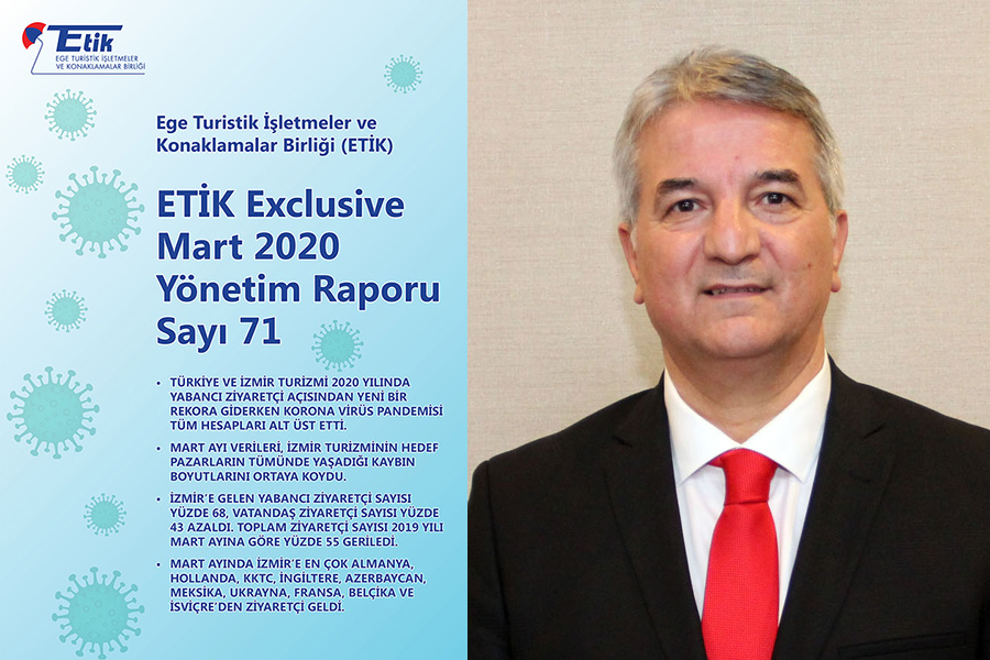 Ege Turistik İşletmeler ve Konaklamalar Birliği’nin (ETİK) Mart ayı yönetim raporu, koronavirüs (Covid-19) salgınının etkisiyle hedef pazarlardan gelen turist sayısının dibe vurduğunu ortaya koydu. “Piyasada yangın var” diyen Türkiye Otelciler Federasyonu (TÜROFED) Başkan Yardımcısı ve ETİK Başkanı Mehmet İşler, “Açıklanan önlemler sektördeki yangını söndürmeye yetmiyor. Yangının daha fazla büyümemesi için sektörün öncelikle ve acilen desteklenmesi gerekiyor” diye konuştu.