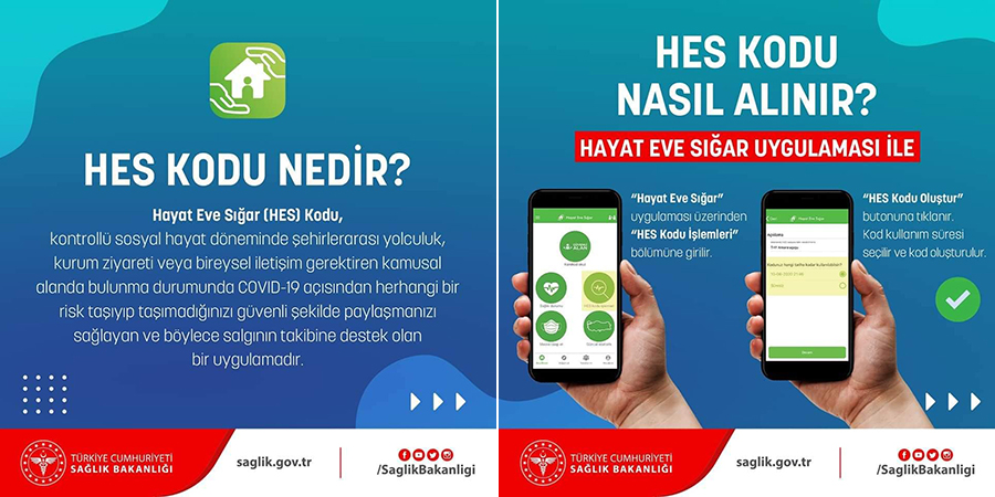 Sağlık Bakanlığı, “Hayat Eve Sığar” (HES) uygulaması kapsamında şehirlerarası ulaşımda kullanılmak üzere “HES kodu” uygulaması başlattı. Kontrollü sosyal yaşam ve yolculuk izni için gereken HES kodu kullanıma açıldı.