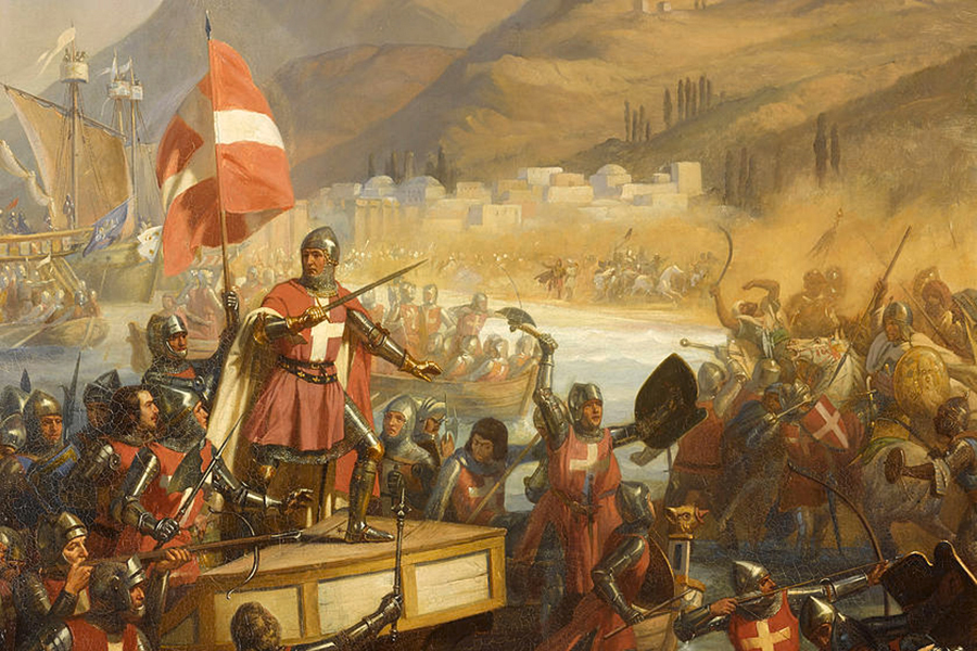 (Tablo: “Smyrna Kuşatması, 1344” (Kanvas üzerine yağlıboya), Ressam: Charles-Alexandre Debacq (1804-1863)