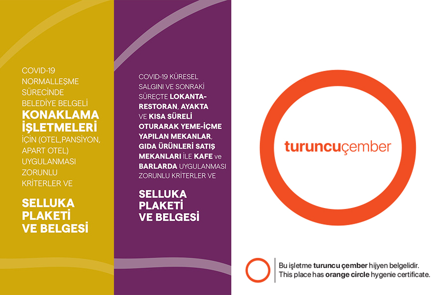 İzmir Turizm Hijyen Kurulu, selluka sisteminin ardından turuncu çember uygulamasını başlattı. Kurulun belirlediği hijyen standartlarının İzmir’deki belediye ruhsatlı konaklama ve yeme içme tesislerinde uygulanacak ve bu standartlara sahip işletmeler “turuncu çember sertifikası” ile belgelendirilecek.