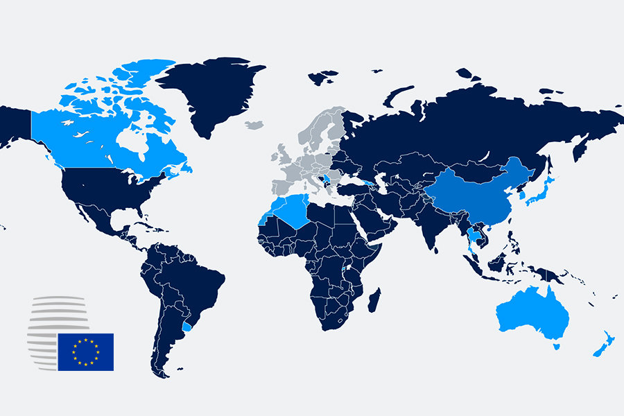 Avrupa Birliği Komisyonu, 16 Mart 2020’de üçüncü ülkelerden AB’ye zorunlu olmayan tüm seyahatlerin bir ay süreyle geçici olarak kısıtlanmasını öneren bir bildirimi kabul etmişti. AB devlet veya hükümet başkanları 17 Mart’ta bu kısıtlamayı uygulamayı kabul etmişti. Seyahat kısıtlaması sırasıyla 8 Nisan 2020 ve 8 Mayıs 2020’de bir ay daha uzatılmıştı.