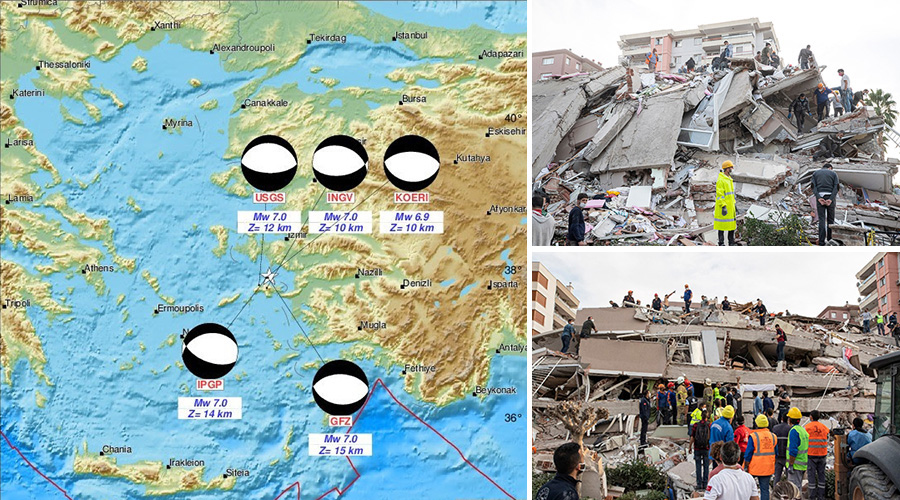 “Ana şokun odak mekanizması çözümleri yaklaşık doğu-batı doğrultusunda uzanan bir normal faylanmaya işaret etmektedir. Eldeki sınırlı veriler ışığında yapılan ilk değerlendirmelere göre, depreme kaynaklık eden fay, Büyük ve Küçük Menderes Grabenlerini denetleyen kuzeye ve güneye eğimli normal fayların batıda Ege Denizi’ndeki devamı olabilir. Buna ilişkin çalışmalar, gerekli ayrıntılı fay çözümleri sonucu ortaya çıkacaktır.”