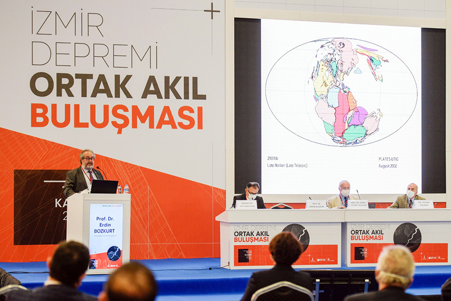 “İzmir Depremi Ortak Akıl Buluşması” kapsamında düzenlenen oturumlarda çok sayıda bilim insanı depremler ve yapılması gerekenler hakkında görüşlerini paylaştı. Günün ilk oturumunda Orta Doğu Teknik Üniversitesi’nden Prof. Dr. Erdin Bozkurt, Prof. Dr. Bora Rojay ve Prof. Dr. Ahmet Cevdet Yalçıner ile Boğaziçi Üniversitesi Kandilli Rasathanesi’nden Dr. Doğan Kalafat konuştu. Depremin yeryüzünün yaşadığına yönelik bir işaret olduğunu belirten uzmanlar, Anadolu coğrafyasının bugünkü şeklini almasının bölgede milyonlarca yıldır gerçekleşen depremler sonucu olduğunu hatırlattı. Coğrafyanın dünyadaki en aktif bölgelerden biri olduğuna değinilerek deprem ile yaşamanın öğrenilmesi gerektiğinin altı çizildi.