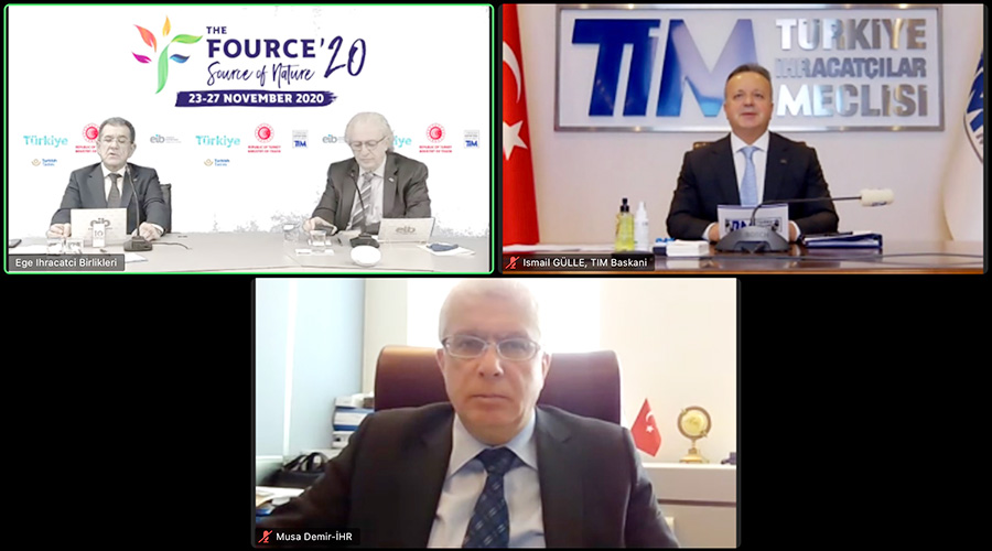 Türkiye İhracatçılar Meclisi Başkanı İsmail Gülle konuşmasında “Bakanlığımız ve Meclisimizin destekleriyle gerçekleşen, 50’den fazla firmamızın katılım sağladığı, ülkemizin ilk sanal gıda fuarı olan, The Fource sanal gıda fuarında aranızda bulunmaktan büyük memnuniyet duyuyorum. Ege İhracatçı Birlikleri bünyesindeki gıda sektörlerimiz, The Fource sanal gıda fuarımızla birlikte, gıda fuarları için düşünülen ‘görmeden, tatmadan gıda tanıtılmaz’ tabusunu da yıktılar” dedi. Başta gıda ve tarım sektörleri olmak üzere tüm sektörlerin, dijital dönüşüme ayak uydurduğuna dikkat çeken Gülle, “Pandemi, maalesef birçok sektörümüzün üretim ve ihracatında, özellikle nisan ve mayıs aylarında, daralmaya neden oldu. Gıda ve tarım sektörlerimiz, bu dönemde ihracatını artıran yegane sektörler oldu. İnanıyorum ki, bu sektörlerimizde 2020 yılını rekorlarla kapatacağız. Bununla beraber, ülkemizin güvenli üretim merkezi rolünü daha da ortaya çıkararak, yeni dönemde ihracat hacmimizi inşallah katlayacağız” diye konuştu.