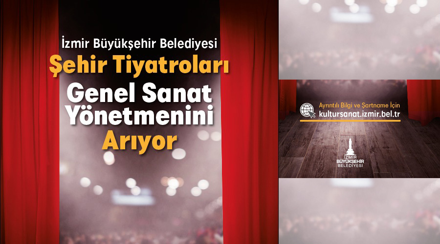 İzmir Büyükşehir Belediyesi, kurulma çalışmaları süren şehir tiyatroları için genel sanat yönetmeni arıyor. Genel sanat yönetmenliğine başvuracak adaylarda “üniversite ve konservatuvarların tiyatro bölümlerinde en az dört yıl süreli lisans eğitimini tamamlamış olma” şartı aranıyor. Başvuru için son tarih 23 Ocak 2021 olarak açıklandı. Şehir Tiyatroları Danışma Kurulu tarafından taslağı hazırlanan “Şehir Tiyatroları Yönetmeliği”, Büyükşehir Meclisi’nin 10 Ağustos 2020’de aldığı 522 sayılı kararla kabul edildi. Şehir Tiyatroları Danışma Kurulu Cezmi Baskın, Eren Aysan, Hülya Nutku, Yücel Erten, Levent Üzümcü, Zeynep Altıok, Orhan Alkaya’dan oluşuyor.