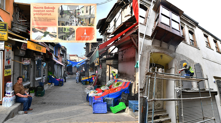 İzmir Büyükşehir Belediyesi’nin Havra Sokağı’nı yenileme çalışmaları da sürdürüyor. 136 metre uzunluğundaki sokakta yağmur suyu ve atık su hatları ayrıştırılarak su baskınlarının önüne geçildi. İçme suyu, enerji, iletişim, aydınlatma hatları ile zemin döşemeleri yenilendi. 67 dükkanın bulunduğu sokakta üst örtü çalışmaları sürüyor. Ürün satış sergilikleri, tabelalar ve sokak aydınlatmaları yenilenecek. Böylelikle tarihi dokusu ve özgün yapısı ile kentin en önemli bölgelerinden biri daha ayağa kaldırılmış olacak.