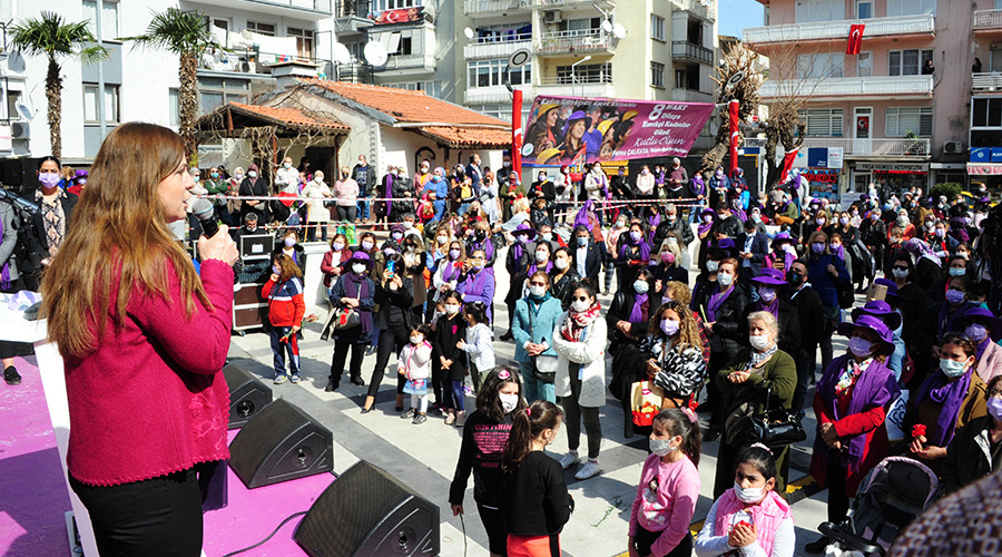 Açılış töreni öncesinde Balçova Cumhuriyet Meydanı’nda toplanan ve şehit olmuş, mesleğini yaparken hayatını kaybetmiş ya da şiddete uğrayarak katledilmiş kadınlar anısına saygı duruşunda bulunuldu. Balçova’da yaşayıp farklı mesleklerde görev yapan kadınların konuşmasının ardından söz alan Balçova Belediye Başkanı Fatma Çalkaya “Biz bugün burada özgürce toplanıp haklarımızı savunabiliyorsak bunu Cumhuriyete borçluyuz” dedi. Çalkaya sözlerini şöyle sürdürdü: “Burada farklı mesleklerden kadınlar haykırabiliyorsa, ben bir kadın belediye başkanı olduysam bunu Gazi Mustafa Kemal Atatürk’e borçluyuz. Balçova’da bir çok hakkımız var. Çünkü Balçovalı kadınlar güçlerinin farkında. Balçova’da kadına rağmen ya da kadın olmadan hiçbir şey yapılamaz. Ancak yapacak daha çok işimiz var. Ülkemizdeki tüm kadınlar haklarına kavuşana kadar mücadelemiz devam edecek.”