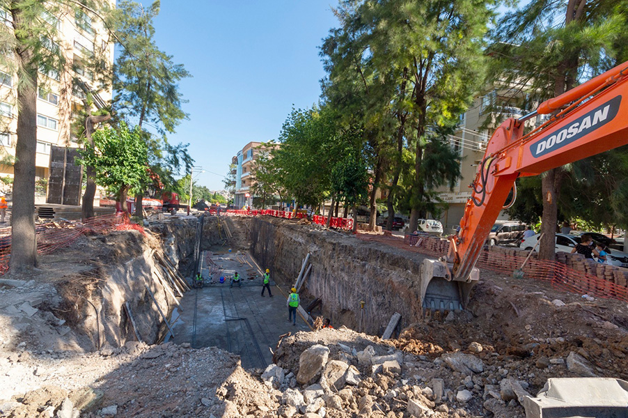 Proje çalışmalarını yerinde inceleyen İzmir Büyükşehir Belediye Başkanı Tunç Soyer, İZSU Genel Müdürü Aysel Özkan’dan bilgi aldı. Yapılan projeyle birlikte aşırı yağışlarda Buca’da baskınların yaşanmayacağını belirten Soyer, “İzmir’in dört bir yanında çağdaş bir altyapı oluşturmak için seferberlik halinde çalışıyoruz. Bu dönem kent tarihinin en fazla yağmur suyu kanalı imalatı yapılan dönemi olarak tarihe geçecek” dedi.