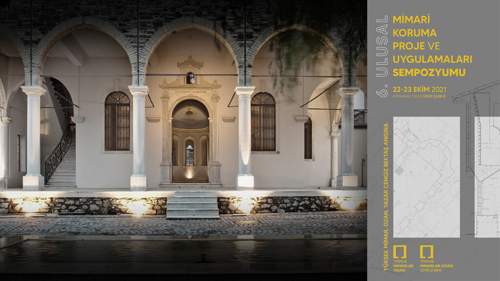 Mimarlar Odası İzmir Şubesi “6. Ulusal Mimari Koruma Proje ve Uygulamaları Sempozyumu” düzenleyecek. Yüksek Mimar Cengiz Bektaş’ın anısına düzenlenecek sempozyum, 22 – 23 Ekim 2021 günlerinde İzmir Mimarlık Merkezi’nde gerçekleştirilecek.