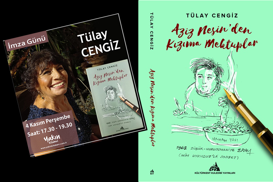 Gazeteci Tülay Cengiz “Aziz Nesin’den Kızıma Mektuplar” adını taşıyan kitabını okurları için imzalayacak. 4 Kasım 2021 Perşembe günü Alsancak’ta Yakın Kitabevi’ndeki imza etkinliği saat 17.30 – 19.30 saatleri arasında gerçekleşecek. Cengiz’in kitabı Ataol Behramoğlu’nun ön sözüyle yayınlandı.