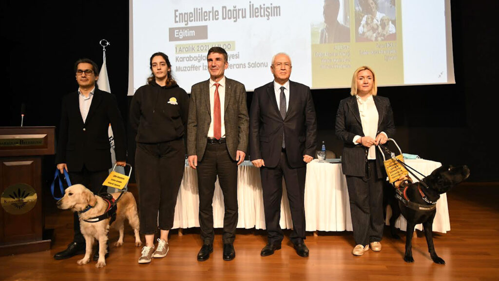 Karabağlar Belediye Başkanı Muhittin Selvitopu’nun da izlediği etkinlikte, Rehber Köpekler Derneği Başkanı Av. Nurdeniz Tunçer, Dernek Yönetim Kurulu Üyesi Ali İlhan, rehber köpek hareketlilik eğitmeni Burcu Bora ve rehber köpek sahibi Görey Beydağı, bilgi ve deneyimlerini katılımcılarla paylaştı. Konuşmalar aynı anda işaret diline çevrilerek işitme engelli çalışanlara aktarıldı.