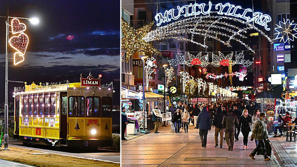 İzmir Büyükşehir Belediyesi 2022’ye sayılı günler kala kent merkezindeki cadde, sokak ve meydanları rengarenk ışıklarla donattı. İzmir Metro AŞ, Konak ve Karşıyaka tramvayları, Birinci Kordon’da çalışan Nostaljik Tramvaylar da ışıklarla süslendi. Birinci Kordon Liman – Cumhuriyet Meydanı arası, Alsancak İskele, Gündoğdu Meydanı, Cumhuriyet Meydanı, Ali Çetinkaya Bulvarı, Kıbrıs Şehitleri Caddesi, Pasaport Vapur İskelesi, Konak Meydanı, Kemeraltı Anafartalar Caddesi, Milli Kütüphane Caddesi, Bornova Meydanı, İzmir Marina ışıklarla donatıldı. Ayrıca meydanlara direk motifleri ve ışıklı taklar yerleştirildi.