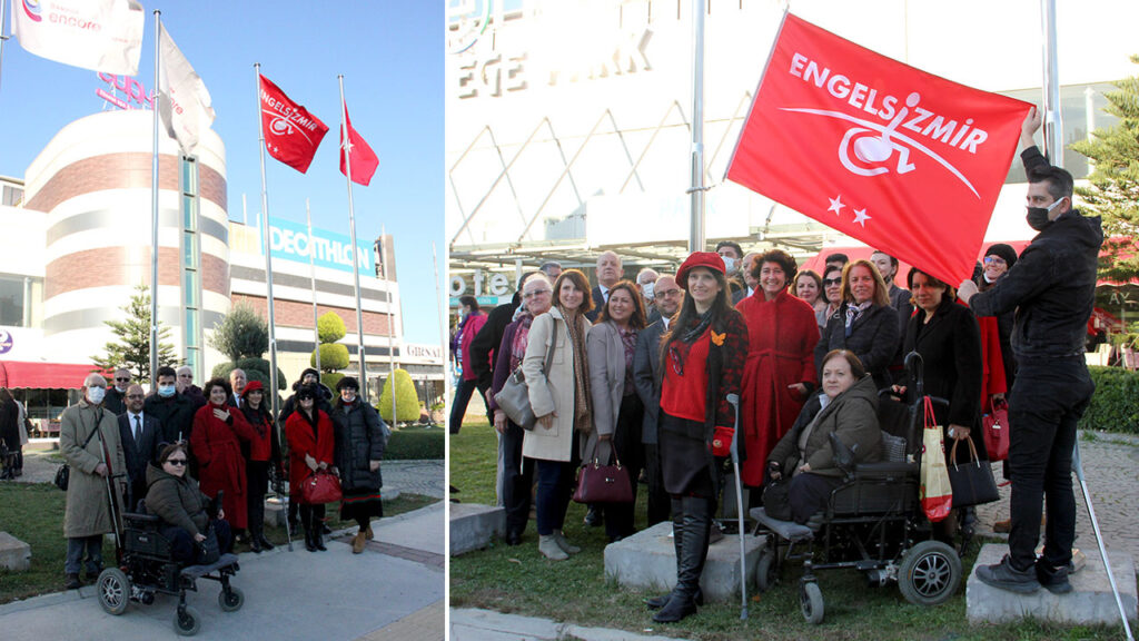 Ramada Encore by Wyndham İzmir Otel’ndeki bayrak törenine Engelsiz İzmir Yürütme Kurulu Onursal Başkanı Neptün Soyer, İzmir Büyükşehir Belediyesi Genel Sekreter Yardımcısı Ertuğrul Tugay, Kırmızı Bayrak Komisyon üyeleri, Engelsiz İzmir Yürütme Kurulu üyeleri ve ilçe belediyeleri başkanlarının eşleri katıldı.