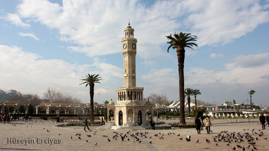 Kent Konak Meydanı’ndan doğru büyüyerek ilerler. Kalabalık tembelce akıp geçer önünüzden; söylemesi garip gelse de, ancak belli belirsiz görebilirsiniz onları; insanlar hafif bir karmaşa içinde geçip giderler önünüzden. Kent bir karınca yuvası gibi bu alanda kaynaşır. Birtakım sözler, insanların ayak sesleri yankılanır. Görülmesi gerek işler vardır, ödenmesi gereken eski borçlar, arayıp bulunması gereken ilişkiler… Bir yandan bir sevinç çığlığı atarak coşkuyla kucaklaşan eski dostları görürsünüz.