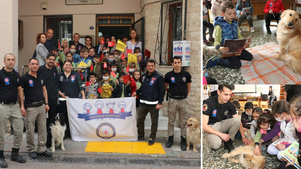 Kütüphane Haftası kapsamında düzenlenen “Kitap Arkadaşım Köpek – Bella ve Chef ile Kitap Okuyorum” etkinliği İl Emniyet Müdürlüğü Çocuk Şubesi ve Hoca Mithat İlçe Halk Kütüphanesi işbirliğiyle gerçekleşti. Çiğli Harmandalı İlkokulu birinci ve ikinci sınıf öğrencisi 20 çocuk, ilk kez geldikleri çocuk kütüphanesinde hem arkadaşlarına hem de eğitimli polis köpekleri Bella ve Chef’e kitap okudular.