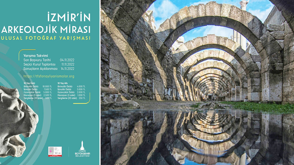 İzmir Büyükşehir Belediyesi Kent Tarihi ve Tanıtımı Dairesi Başkanlığı’nın Türkiye Fotoğraf Sanatı Federasyonu işbirliği ile düzenlediği “İzmir’in Arkeolojik Mirası” konulu fotoğraf yarışması için başvurular başladı. Ulusal yarışma İzmir’in arkeolojik kültürel mirasına ilişkin farkındalığı artırmayı, amatör-profesyonel fotoğrafçıları ve gençleri arkeolojik-kültürel miras alanlarıyla buluşturmayı ve bu alanların belgelenmesini amaçlıyor. Para ödüllü yarışmaya 18 yaş üstü profesyonel ve amatör fotoğrafçılarla, 18 yaş altı gençler katılabilecek. Yarışma için başvurular www.tfsfonayliyarismalar.org internet adresi üzerinden yapılabilecek. İzmir Büyükşehir Belediyesi geçtiğimiz yıl da “Kemeraltı’ndan Kadifekale’ye İzmir Tarihi Kent Merkezi” konulu ulusal fotoğraf yarışması düzenlemişti.