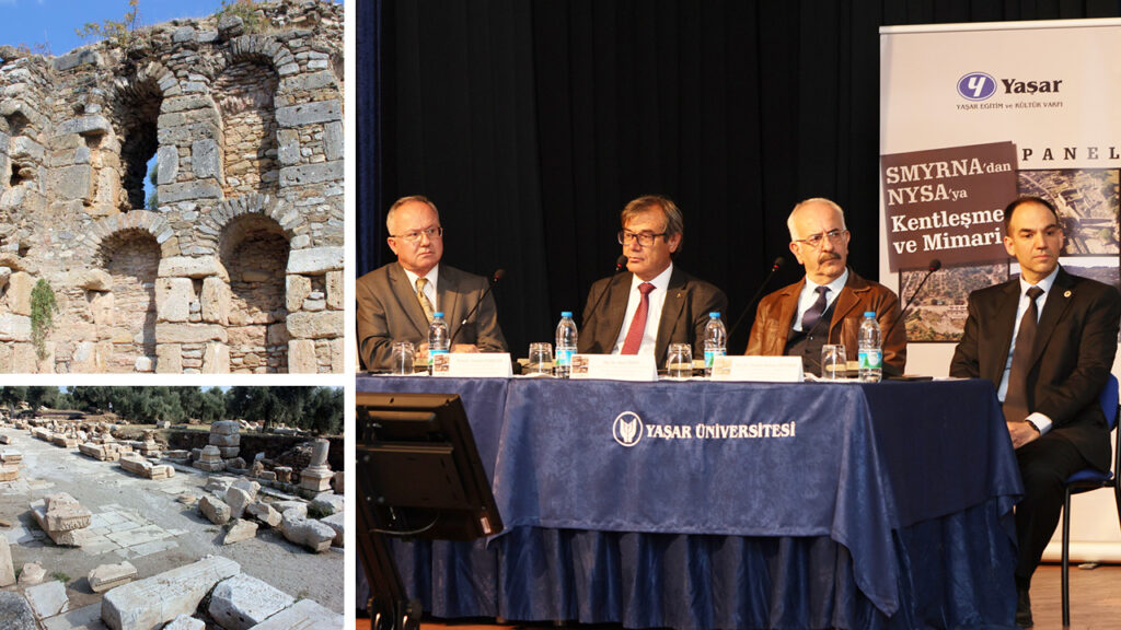 Yaşar Eğitim ve Kültür Vakfı, Yaşar Üniversitesi’nde “Smyrna’dan Nysa’ya Kentleşme ve Mimari” konulu panel düzenledi. Oturum başkanlığını Yaşar Üniversitesi Mimarlık Fakültesi Yarı Zamanlı Öğretim Üyesi, Klazomenai Antik Kenti Kazı Başkanı Prof. Dr. Yaşar Erkan Ersoy’un yaptığı panele; Prof. Dr. Cumhur Tanrıver, Doç. Dr. Akın Ersoy ve Doç. Dr. Serdar Hakan Öztaner katıldı. Panelde antik çağ kentlerinde kentleşme ve mimari gelişim, Eski Smyrna, Smyrna ve Nysa antik kentlerinden yola çıkılarak anlatıldı. Panele, üniversitelerin tarih ve arkeoloji bölümü öğretim üyeleri ve öğrencileri ile arkeolojiye ilgi duyanlar katıldı.