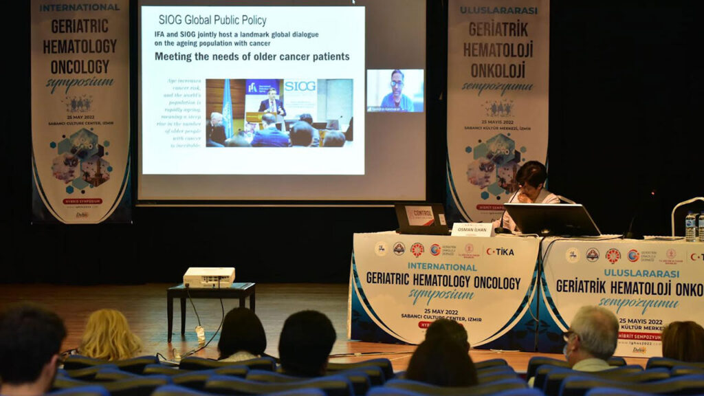 Dokuz Eylül Üniversitesi (DEÜ) Onkoloji Enstitüsü, Geriatrik Hematoloji Derneği ve Geriatrik Onkoloji Derneği işbirliğiyle düzenlenen Uluslararası Geriatrik Hematoloji Onkoloji Sempozyumu DEÜ Sabancı Kültür Sarayı’nda gerçekleştirildi. Türk İşbirliği ve Koordinasyon Ajansı Başkanlığı’nın (TİKA) katkılarıyla gerçekleştirilen hibrit sempozyum, dünyada ve Türkiye’de Geriatrik Hematoloji-Onkoloji ile ilgilenen hematoloji, tıbbi onkoloji ve farmakoloji uzmanlarını, geriatristleri ve gerontologları bir araya getirdi.