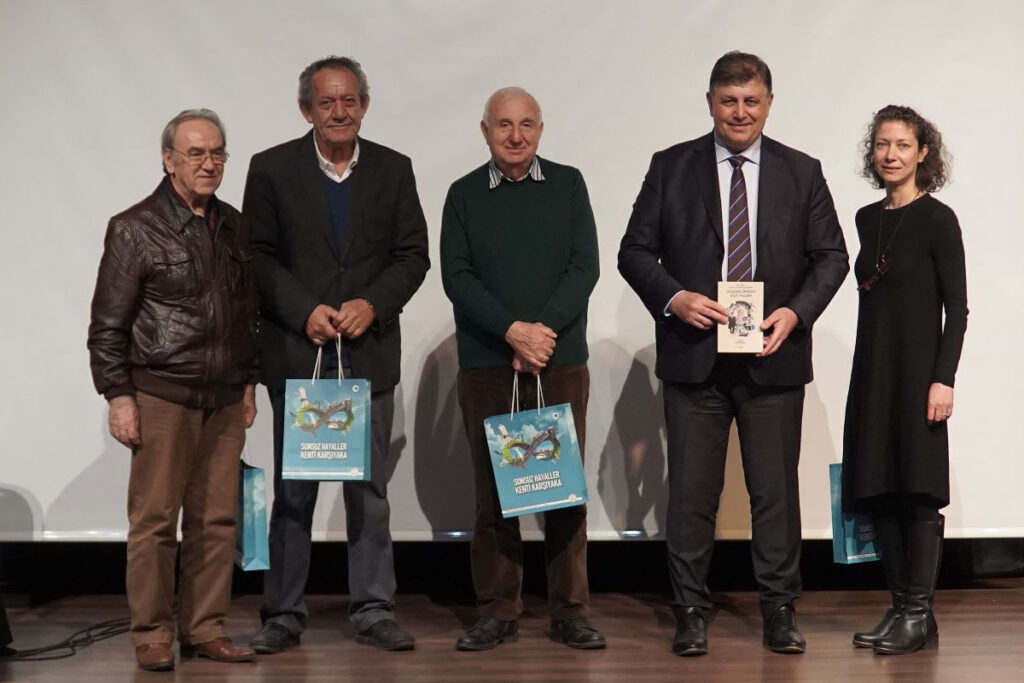 Karşıyaka Belediye Başkanı Dr. Cemil Tugay, çocukluk ve gençlik yıllarından itibaren İzmir ile olan ilişkisine değindi, aidiyet duygusunun önemine dikkat çekerek, insanın kendisini bir yere ait hissetmesinin önemli bir ihtiyaç olduğunu söyledi. Tugay, “İzmir’de Balkan savaşları ile beraber başlayan mübadele ile devam eden göçlerle değişen bir nüfus popülasyonu var. İzmir’in işgali ile başlayıp 9 Eylül’e kadar geçen süreçteki o yıkım dönemi ile her şeyin değiştiği zamana kadar ki İzmir ile daha sonraki İzmir arasında bilinçli mi bilinçsiz mi olduğunu anlamadığım bir hafıza kopukluğu var. Hafıza mekanlarla, sosyal yaşamla ve kültürle devam edebiliyor. Biz mekanları ve sosyal yaşamı dejenere eden bir yönetim anlayışına maruz kaldığımız için ve halen maalesef bu devam ettiği için geçmişle bağımızı kurmakta zorluk çekiyoruz” dedi.