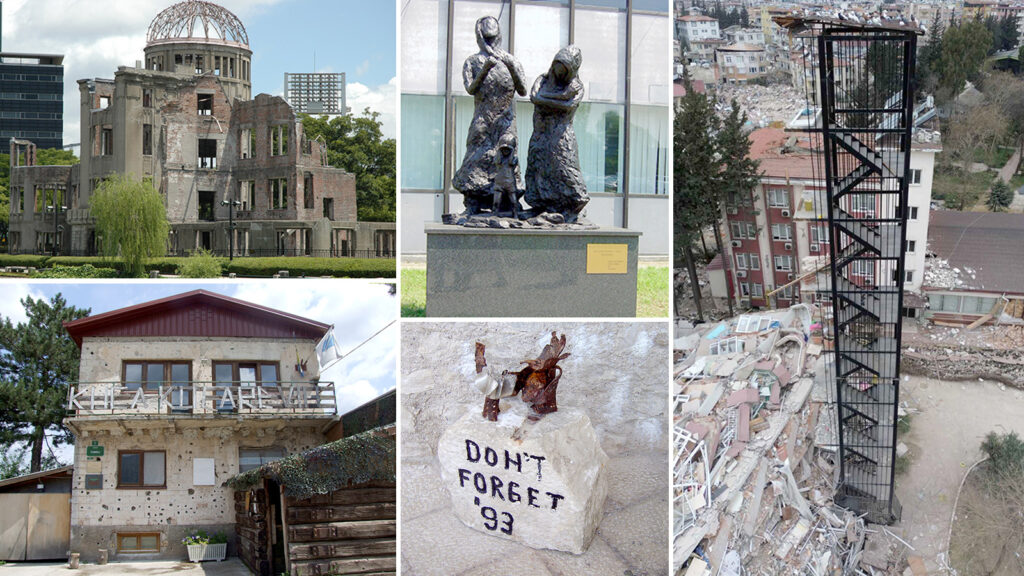 Dünyanın bir çok ülkesinde afetler, savaşlar, büyük yıkımlar yaşanıyor. Bütün bu acıların bir daha hiç yaşanmaması, insanlığın ortak acı mirasının unutulmaması için kimi örnekler göz önünde bırakılıyor. Acının tanığı kimi yapılar ortadan kaldırılmıyor, olduğu gibi korunarak sergileniyor. Sergileniyor ki o acılar bir daha yaşanmasın, unutulmasın, unutturulmasın…