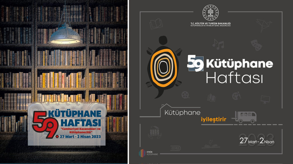 Kitapseverlerin yol göstericisi kütüphanecileri yazarlar ve okurlarla buluşturan 59. Kütüphane Haftası nedeniyle 27 Mart – 2 Nisan 2023 tarihleri arasında çeşitli etinlikler düzenlenecek. İzmir Atatürk İl Halk Kütüphanesi Müdürlüğü’nde yapılacak açılış töreniyle başlayacak hafta boyunca kütüphane tanıtımları gerçekleşecek, yazar-okur buluşmaları, söyleşiler ve atölye çalışmaları yapılacak.