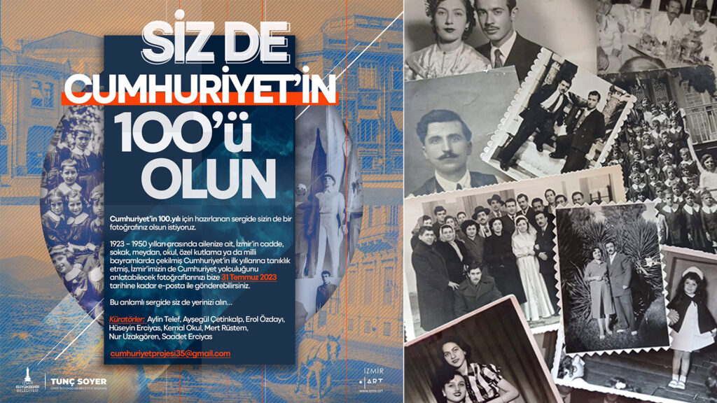 İzmir Büyükşehir Belediyesi, Türkiye Cumhuriyeti’nin yüzüncü kuruluş yıldönümü için Ekim ayında “Cumhuriyetin 100’ü İzmir” sergisine ev sahipliği yapacak. Sergide İzmir’de Cumhuriyet yıllarına tanıklık eden aile fotoğraflarına da yer verilecek. Cumhuriyet yolculuğunu anlatacak fotoğrafların 31 Temmuz’a kadar gönderilmesi gerekiyor.