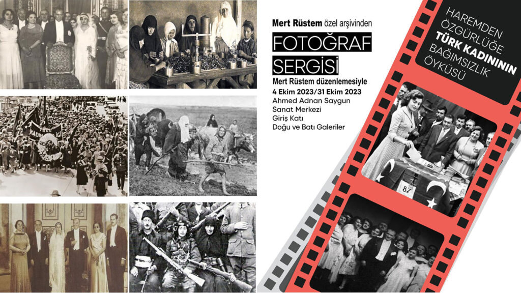 Ahmed Adnan Saygun Sanat Merkezi, Hamza Rüstem Fotoğrafhanesi’nin yöneticisi, koleksiyoner Mert Rüstem’in arşivinden “Haremden Özgürlüğe Türk Kadınının Bağımsızlık Öyküsü” konulu fotoğraf sergisine ev sahipliği yapacak. Türk Kadınlar Birliği İzmir Şubesi işbirliğiyle düzenlenen sergi 04 Ekim 2023 günü Ahmed Adnan Saygun Sanat Merkezi’nin giriş katındaki doğu ve batı galerilerde açılacak. Sergi 31 Ekim 2023 gününe kadar açık kalacak.