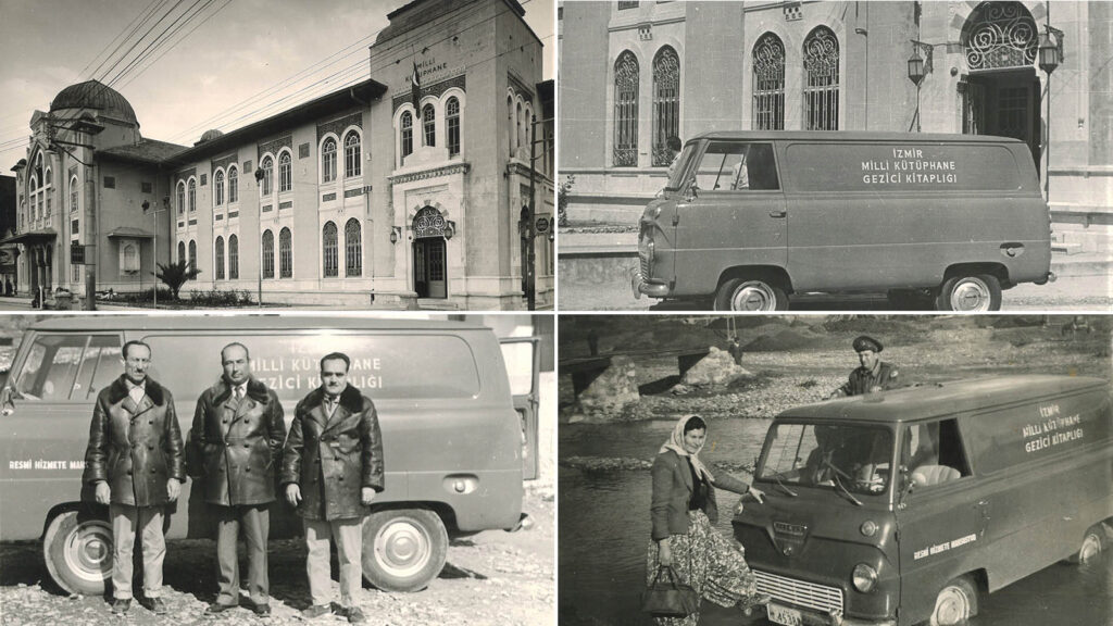 İzmir Milli Kütüphane’nin “gezici kütüphane” aracı 11 Mayıs 1960 tarihinde hizmete girerek önce Cumaovası (Menderes) ve Değirmendere bucaklarında 16 köye ulaşıyor. Hazırlanan 1000 kitaplık koleksiyon, 50’şer kitaplık çantalarla 15 günlük sürelerle kitapseverlerle buluşuyor. Gezici kütüphanenin kornasını duyduğunda çocukların anneleriyle evlerden, erkeklerin köy kahvesinden sevinçle yanına koştuğu araç, şimdilerde çoğunda yerleşik bir halk kütüphanesi bulunan ilçelerin köylerinde on yıl sürecek hizmetine başlıyor.