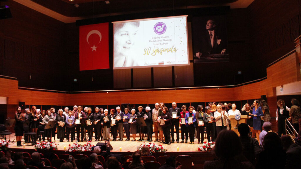 ÇYDD İzmir Şubesi’nin 30 yıllık çalışmalarını içeren “Çağdaşlığın İzinde 30. Yıl” gecesi ise aynı gün Ahmed Adnan Saygun Sanat Merkezi’nde düzenlendi. Sunuculuğunu Deniz Dünyaoğulları Hünler’in üstlendiği gecede önce ÇYDD İzmir Şubesi’nin 30 yıllık kuruluş öyküsünü anlatan tanıtım filmi gösterildi.