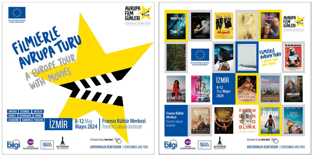Ege Sanayici ve İş İnsanları Derneği (ESİAD) AB Bilgi Merkezi, 8-12 Mayıs 2024 tarihleri arasında Avrupa Film Günleri’ne ev sahipliği yapacak. Avrupa Birliği Türkiye Delegasyonu iş birliğiyle düzenlenen etkinlikte, AB üyesi ülkelerden 19 film İzmirli izleyiciyle buluşacak. Gösterimler İzmir Fransız Kültür Merkezi’nde gerçekleştirilecek ve ücretsiz olacak.
