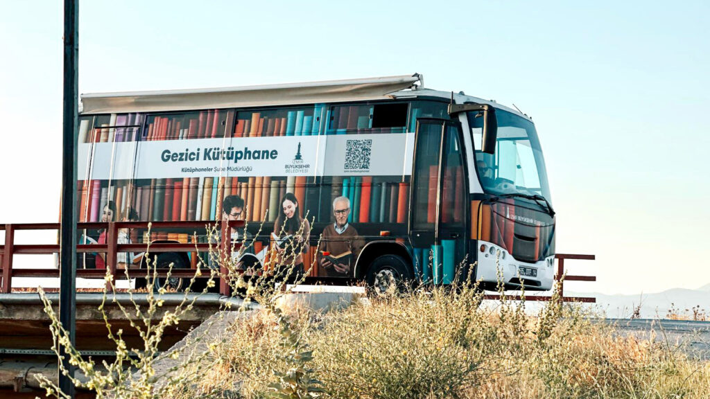 İzmir Büyükşehir Belediyesi “gezici kütüphane yollarda” sloganıyla özel olarak düzenlenmiş iki otobüsle hizmet veriyor. Gezici kütüphanelerde toplam 4 bin 615 Türkçe kitap bulunuyor. 4 bin 177 vatandaşın üye olduğu İzmir Büyükşehir Belediyesi gezici kütüphanelerinde, üyeler kütüphaneden tek seferde iki kitabı 21 gün süreyle ödünç alabiliyor. Belediyenin gezici kütüphanesi aynı zamanda çocuklar, gençler ve yetişkinler için sosyalleşme alanları da yaratıyor.